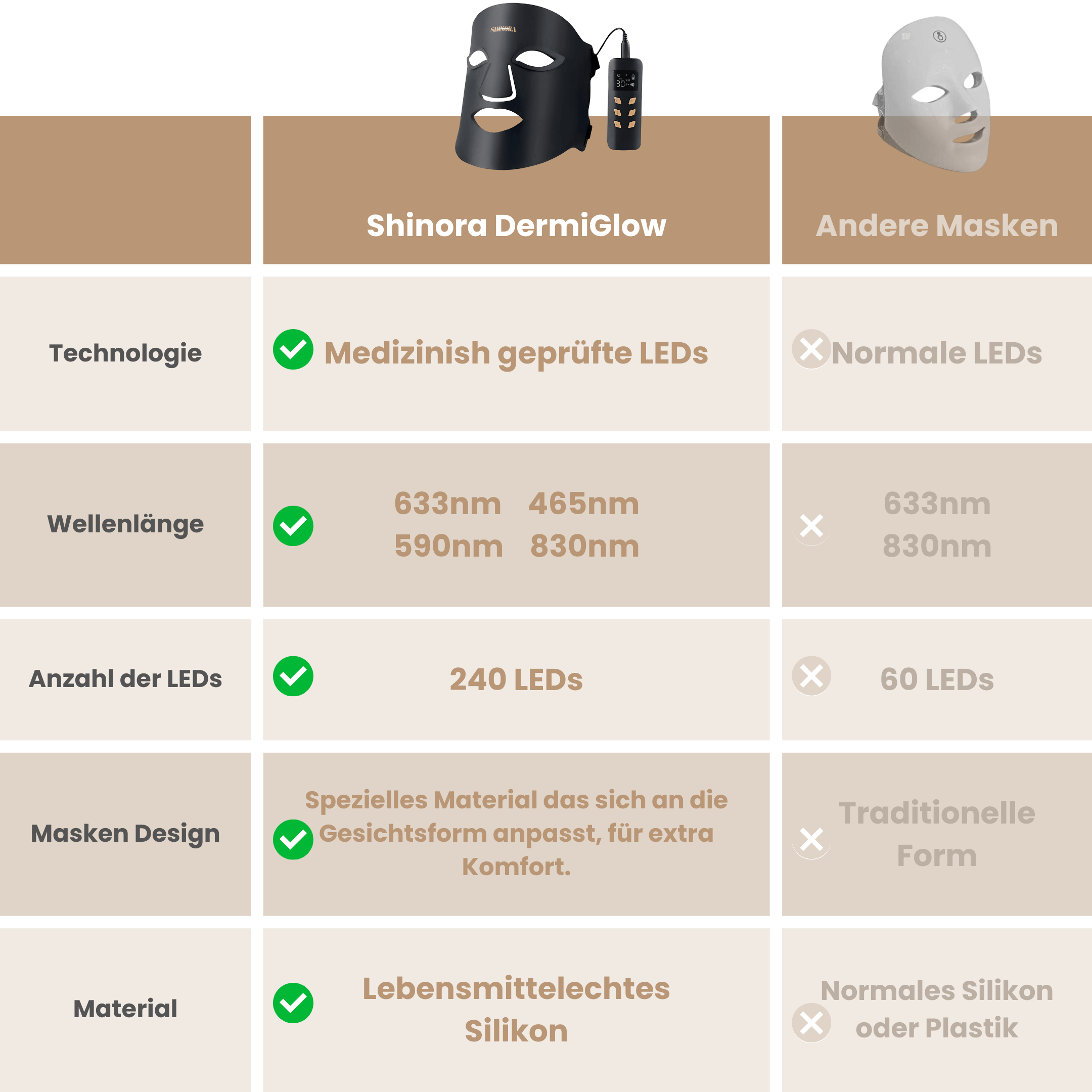 "Ich habe angefangen, immer mehr Falten zu entdecken, und das hat mich echt gestört. Teure Cremes und Behandlungen haben nicht viel gebracht. Dann hab ich die DermiGlow Lichttherapiemaske von Shinora Care ausprobiert. Und was soll ich sagen? Meine Falten sind deutlich weniger geworden, und meine Haut fühlt sich wieder jung und strahlend an. Ich bin so froh, dass ich endlich etwas gefunden habe, das wirklich wirkt!"