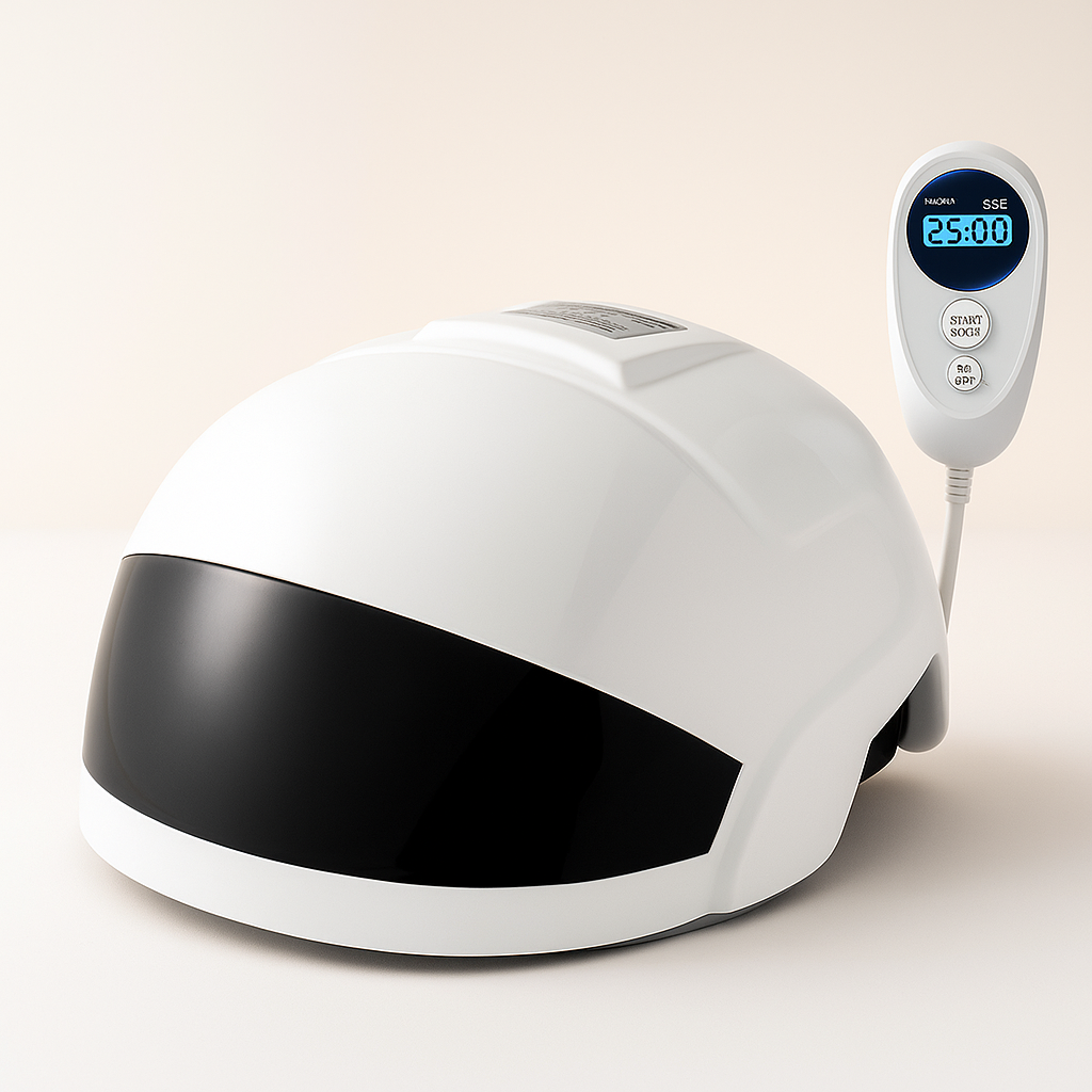 26 Laser und 30 LEDs stimulieren Haarfollikel gezielt – für sichtbar kräftigeres Haarwachstum.