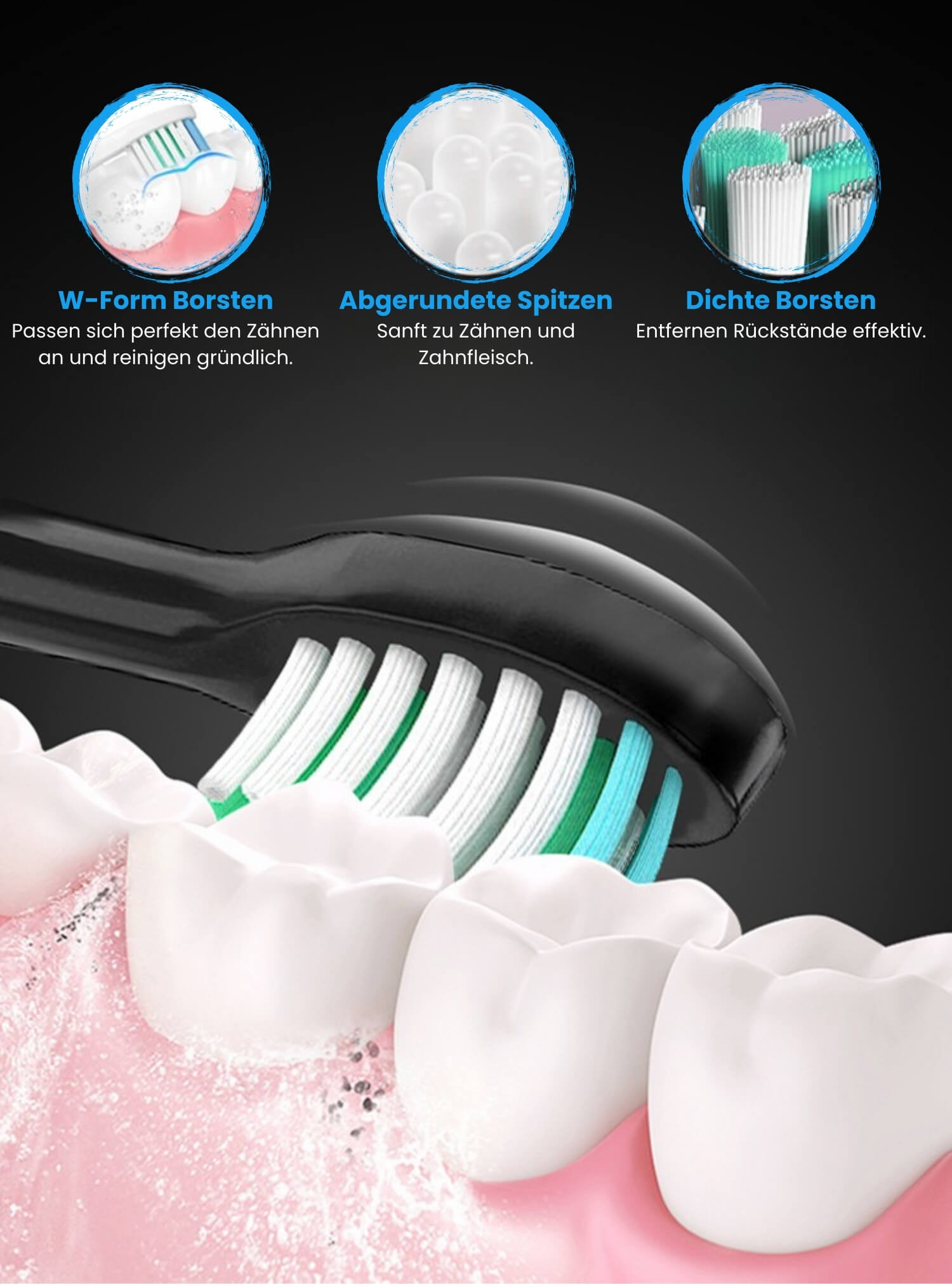 - Gründliche Reinigung: Entfernt Plaque und erreicht schwer zugängliche Stellen.
