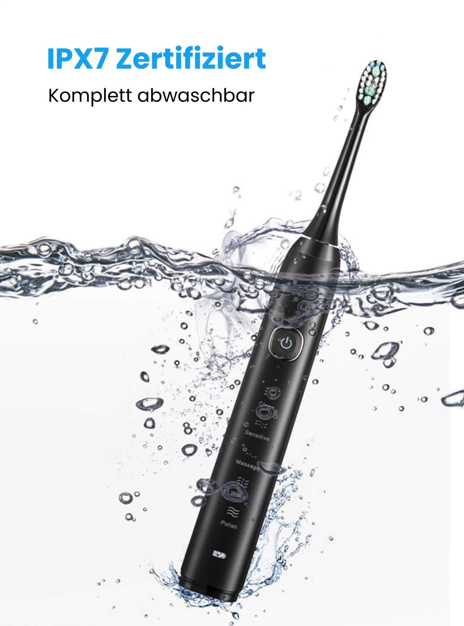 Bruk tannbørsten din uten bekymringer – enten du er i dusjen, ved vasken eller på reise. IPX7-sertifisering sørger for lang levetid og gjør hverdagsrutinen enklere.